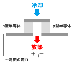電流の方向を変えることで冷却・加熱を行う為、振動や騒音がありません。また、劣化、破損する部品を必要としないため、冷却手段としては寿命の長い(※)方式です。