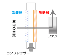 冷媒の気化熱を利用する方式で、冷却力に優れているため、開閉頻度の高い冷蔵庫・ショーケースなどに向いています。駆動音や振動が大きいこと、庫内が乾燥しやすいこと、オゾン層を破壊するといわれているフロンガスを使用していることなどが、デメリットとしてあげられます。