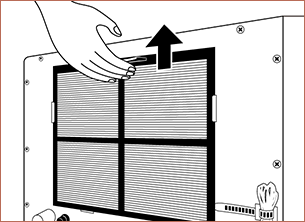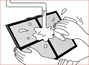 フィルターにほこりが溜まると、冷却機能が発揮されませんので、定期的に清掃してください。外したフィルターは水洗いをした後、よく乾かしてください。