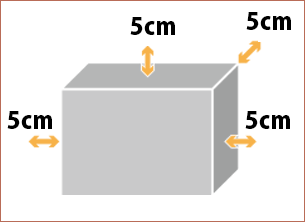 安全にお使いいただくため、設置の際は、必ず上面・側面・背面に5㎝以上のスペースを確保して設置をしてください。